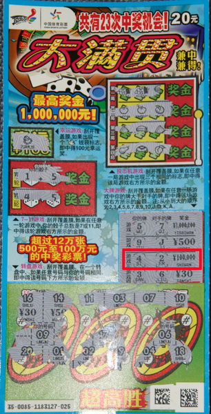 小刘(化名)是个刚毕业不久的大学生,买彩票纯属休闲娱乐,接触彩票也就是这一两年的时间,但对顶呱刮系列情有独钟,尤其是20元票更是每次都要刮上几张。“这个纯属运气,也不用费尽心思研究数字,平时中点小奖也挺开心的,谁知这次居然中了10万元!我真是太幸运了!”小刘如是道。当时小刘买了5张大满贯,想着正好赶上有活动,要是能中个200元以上的奖再多拿100元彩票就好了,谁知刮到第三张就刮出了10万元!在销售员的确认下,小刘总算相信了自己的眼睛,第二天就赶紧来到体彩中心领奖,还发生了一个小小的插曲——差点没拿赠送的100元彩票,“捡了西瓜也不能丢了芝麻呀!”我们笑道。