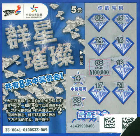小周只买了两张,他小心翼翼地刮开中奖号码,有个“08”,小周突然感觉有戏,为了留点悬念,小周只刮了号码,没有刮开中奖金额,直到第三行,再次看到“08”,却是松了口气,看来自己运气还可以。小周按部就班的刮完所有号码后,开始刮“08”下的金额,过程倒是稀松平常,只是结果让小周大大惊喜了一把,看着5个“0”一时傻了眼,仔仔细细又对照了一遍,确定是10万元,小周立即问了兑奖事宜,火速打电话找来几个朋友陪着到扬州市体彩中心兑奖。小周也表示今后一定要“球场、即开都给力,不忐忑!” (扬州 刘冬 张瑜)
