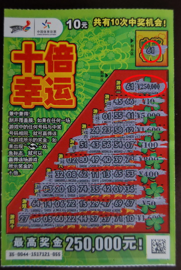 2月7日,丰县首羡03451体彩站点传来喜讯,该站点一幸运小伙刮中即开体彩顶呱刮“十倍幸运”大奖25万元!站点中奖后,及时悬挂横幅、燃放鞭炮,为节日增添了一丝喜气!据站点销售员称,中奖彩民是位20多岁的小伙子,他并不是个老彩民,接触“顶呱刮”即开票仅仅两三个月时间,但他却十分喜爱这个即开即兑的彩种,隔几天就会买上几张,有时也中些小奖。7号那天来站点购买了3张面值10元的即开玩法“玉兔送财”,中了40元,然后兑换了4张“十倍幸运”继续刮,真是运气来了挡也挡不住,仅刮到第一行的时候,就刮出了中奖号码“61”,看到金额末尾是几个0,乍一看还以为是5000,没想到全部刮开了居然是25万的头奖。当时站点的彩民纷纷过来围观,大家都称赞小伙的运气好,并且有不少彩民当场就要求买“十倍幸运”想沾沾喜气,中个大奖!
