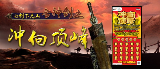 《七剑下天山》是一部广为人知的武侠小说。讲述了晦明大师弃尘世而深居天山颠峰,数十年铸成七把宝剑,此七把剑代表晦明大师在天山上经过的七个不同剑的境界。巧合的是随着金银生辉的上市,即开体彩顶呱刮自问世以来也发行了七种百万大奖票,而这七种百万票更见证了顶呱刮一段辉煌的发展史。