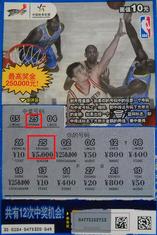 3月29日上午,招商城男装中心55859体彩站点业主蒋先生刚领到“顶呱刮”NBA主题票回站点,就第一时间通知程先生过来尝鲜。程先生迅速赶往站点,买了一整本NBA主题的10元票。他先刮了前10张,出现了一些小奖,大家还都说他运气不错,但程先生相信一直青睐他的幸运女神还会有更大惊喜送给他。怀着这种自信,他继续前进,直至刮到第9张时,中奖号码“25”与你的号码“25”对应了起来,程先生迫不及待地刮开了下方的奖金,彩票显示为“5,000”,他立即将彩票拿给业主蒋先生核对,蒋先生连连恭喜程先生中得了5000元奖金,并对程先生说:“你可能是全常熟首个NBA大奖的获得者呢!快去领奖吧,别忘了,还有一个大礼包呢!”最巧的是,这张中奖彩票票面上的中心人物正是姚明,程先生风趣地说:“别的球星咱不熟悉,可谁不认得姚明,肯定是姚明暗中助我啊!”