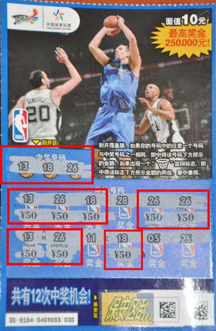杨女士说,3月29日下午一接到NBA新票上市信息,她便火速赶到体彩中心领取。巧的是,新票刚领回去,彩民王先生就赶来了,NBA彩票票面上的球星让王先生顿时眼前一亮,原来,王先生还是个球迷,对篮球足球有很浓厚的兴趣,这次推出的以NBA为主题的即开彩票很是新鲜,王先生毫不犹豫地买了一本刮了起来。刮了不到十张的彩票,一张400元的中奖票浮出了水面,这时,销售员杨女士忙在一旁补充说:“中400元还可以赢取NBA大礼包一套呢。”听到这个消息,围观的彩民试图想沾上王先生的好运,每人都让销售员拿了一本。