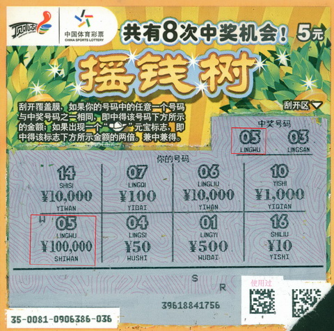 哥哥说:“23号发工资了,弟弟就和同宿舍的人又来到了体彩站点,打了12元大乐透复式票后,就坐下来刮奖,弟弟就随便拿了几张摇钱树,刮到第3张就中奖了,经销售员确认后是中了10万,弟弟都傻了,立刻跑到宿舍找我,告诉我这个喜讯!”哥哥还和弟弟打趣道:“中了大奖,分给哥哥多少啊?!”