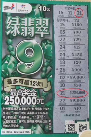目前体彩超级大乐透派送正火热进行中,站点里围在一起看号买彩的彩民络绎不绝,即开体彩顶呱刮在沉寂了一段时间后,再次爆发,“绿翡翠”25万大奖再次喜降彭城,给夏日里的彩民带来了一份惊喜!