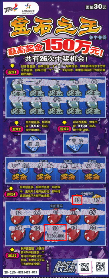 “宝石之王150万!”1115一大早,苏州体彩中心兑奖大厅就传出好消息,一位古稀老人擒获了我省首个“宝石之王”最高奖150万元!