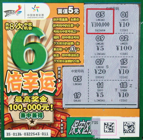 前段时间“宝石之王”上市,小张就想碰碰运气,隔个一两天就去买一回。18日的上午,小张又来到一家体彩网点,也是首先选择了“宝石之王”,再在其他彩票中看了看,发现了“6倍幸运”,销售员告诉他这也是刚上市的新票,建议他买一张试试,于是小张就买了一张,结果中了20元。小张一高兴就把20元中奖奖金全换成了“6倍幸运”彩票,没想到10万大奖正在这几张彩票中等着他呢。