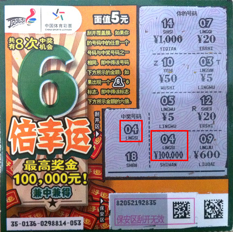 她介绍说,这次就是在和站点老板聊天之余,看见很多人刮了这个“6倍幸运”,觉得在传统的数字匹配玩法之外,还有个倍数的奖金,很新颖也很吸引人,就买了2张。“从一开始刮就觉得我能中大奖,这还真的灵验了,好像是冥冥之中注定的。”