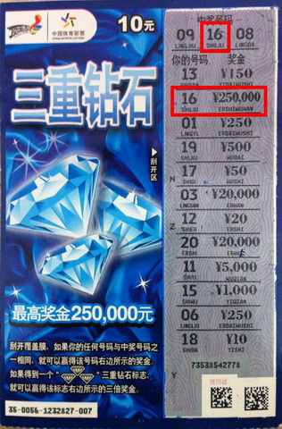 赵先生介绍说,她的女儿在2011年的12月31日和同事去逛超市,在等待同事结账的空闲时间,走进位于浦东花园东大路1号的51852竞彩站点,购买了2张体彩“三重钻石”。