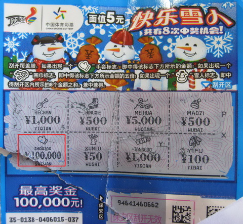 与别的中奖人不同的是,当王先生掏出中奖彩票时,让工作人员吃了一惊,他的这张中奖彩票已经是“伤痕累累”。王先生解释说,刚刮完这张彩票,由于当时太激动以为中得1万元,在这过程中彩票不小心就被撕破了。不过对经常购买顶呱刮的王先生来说,他觉得5元的票面应该中得的是10万吧,于是他把票拿过来仔细看了一遍,哇,竟然是10万!王先生别提有多激动了。也许就是受到幸运女神的眷顾,王先生说年初二那天,他吃完饭就和家人一起来到洪泽县中心闲逛,正好看见体彩在搞活动,于是就想碰碰运气。他先刮了200元,没想到又中了200元,然后拿了两张“快乐雪人”,刮完第一张中了10元,刮到第二张竟然就中了10万元。说起中奖的过程,王先生到现在还意犹未尽,新年就能收获10万元,真是太意外了!