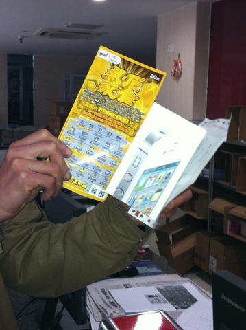 “玩体彩即开 中3000元以上送iPhone4S手机”活动开展的半个月以来,已经有不少彩民陆续来领取手机了,大家抓紧把握余下的半个月时间,奖上加奖,机不可失啊!(无锡:黄珊)