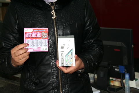 领奖后,李小姐拿着获赠的iPhone4S手机,反复看着包装外盒,“能折开吗?”听了李小姐的话,工作人员笑了,“这已经是你的了,当然可以。” (无锡 于成莲)