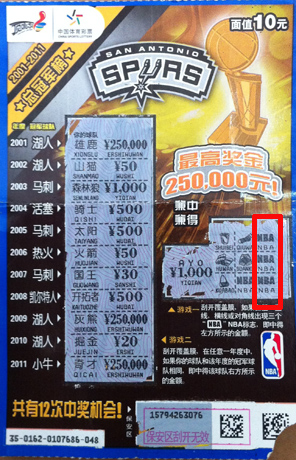 果然,王先生和销售员刚走不久,一位老太太就走进了兑奖大厅,她手上拿着的,正是在 51039 中得 1000 元的“ NBA 总冠军票”。