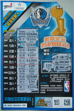 没过多久,站点便传来了中奖喜讯, 05393 站点有彩民刮中了“ NBA 总冠军票” 1000 元奖金,成功赢得 iPad 一台。据了解,这位幸运彩民金先生 9 号一大早就守候在了站点门口,金先生的“痴情”果然给他带来了好运,他购买的第一张“ NBA 总冠军票”顺利刮出了 2006 年 NBA 总冠军热火队,一举中得了 1000 元奖金,并让他如愿以偿获得 iPad 一台。奖品和奖金双丰收让金先生大呼过瘾,他表示之后还会继续刮“ NBA 总冠军票”。