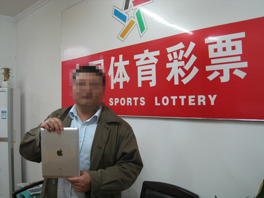 4月9日下午四时,天空飘着淅淅沥沥的小雨,镇江市体彩中心兑奖大厅匆匆的走进一名体态微胖的男性彩民,他掏出一张“ NBA 总冠军票”,问到:“我中了1000 块,是不是在这里领奖还有台苹果 iPad2 可以领取啊?”得到肯定的回答后,该男子兴奋的喊到:“这班加的真值 ! ”是什么事情让这位先生这么开心呢?