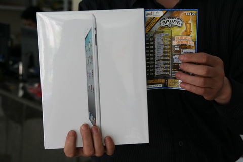 宜兴的小吴(化名)也在4月10日上午领得一部iPad。小吴不仅是NBA的超级球迷,自己也是一位运动健将。9日下午,小吴和朋友打完球,准备先吃完晚饭再回家,在等待用餐时,小吴看到对面体彩店醒目的“刮NBA总冠军票 只要中1000就送iPad”的横幅,便去买了几张来刮,结果运气就这么好,游戏一的对角线刮出三个NBA标志,收获了1000元奖金。领奖时,小吴当即打开iPad的包装,并开机玩了起来,“奖品不错,感觉更好。”
