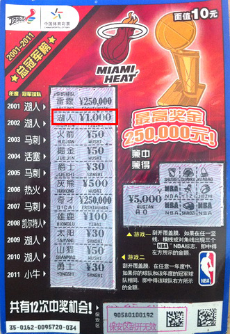 杨先生告诉工作人员,作为85后的他很喜欢NBA,前不久家门口开了一家竞彩店,他就经常进去买几注竞彩篮球,因为对球队比较了解,所以经常中得一些竞彩奖金,有的时候也会顺带买几张“顶呱刮”。“这次NBA总冠军主题的彩票一上市就开展‘中1000iPad’的活动,很吸引人,一直想要台iPad的我就几乎每天都去刮,终于让我刮到1000元。”