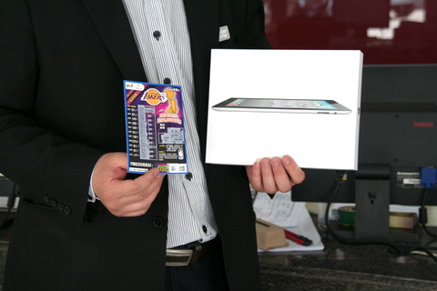 一早,一位提着公文包、西服革履的小伙子走进体彩中心,看到他穿得如此正式我们都没有想到他是来兑奖的。小伙子从包里掏出一张NBA总冠军票递给工作人员,说道“兑奖”,然后便询问工作人员兑奖需要多长时间?原来,他兑完奖后还要赶去上班。在办理手续时,小伙告诉我们,他有时下班后会先到体彩店刮几张彩票再回家。NBA总冠军新票上市又有活动,他就每天去刮几张试一下运气,希望中台iPad,结果体彩如他所愿,真的刮中了1000元,收获了iPad。