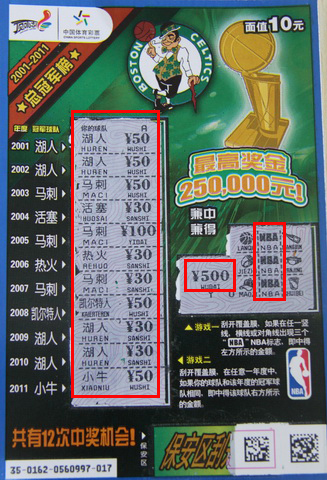 4月26日,徐州市体彩中心又迎来了一位幸运儿。彩友张先生是位“11选5”迷,工作之余常去站点玩“11选5”,他投注水平较高,收获的奖金也相当丰厚。此外,他也很喜欢顶呱刮,常常在玩“11选5”的空档刮上几张碰碰运气。26日当天上午,张先生来到站点先投注了两期“11选5”,随后便打算刮几张“NBA总冠军票”试试手气。销售员专门为他拆了一包新票,他从第一张开始连续刮了六张,有两张分别中了100元和50元。接着,他跳着刮开第8张,又中了50元。好运继续,他又选择第10张刮了起来,没想到先在游戏一中得了500元奖金,又在游戏二中刮了个满堂彩中得500元,奖金共计1000元。站点内彩友们都为他欢呼起来!张先生在赢得大奖的同时,也将获得苹果iPad平板电脑一部。获此双重惊喜,张先生称这一天过得非常开心。