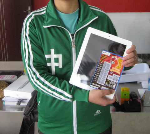 “刮NBA总冠军票,中1000元送iPad”活动到5月2日就要截止了,此前淮安已经送出了24台iPad。5月2日上午,彩民小刘来到淮安市体彩中心领走了第25台iPad。