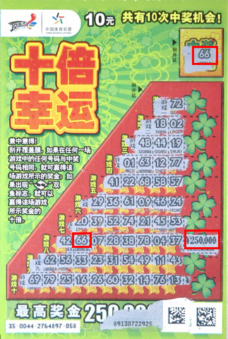 “十倍幸运”自09年年底在常州上市后就迅速得到了彩民的青睐,高达25万元的最高奖金,多达55次的中奖机会,以及票面上象征幸运的四叶草都让彩民爱不释手。5月14日,常州金坛的一位幸运彩民成功收获又一个“十倍幸运”25万元大奖。