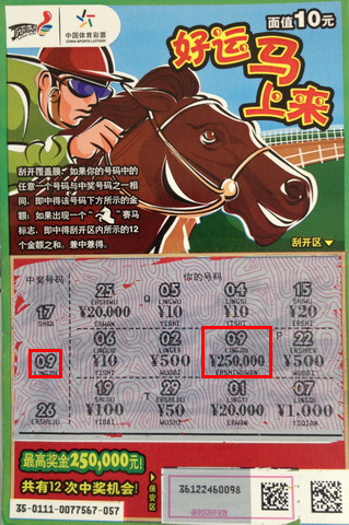 8月8日晚7点左右,杨先生吃过晚饭,和妻子散步途经位于碧溪镇新港农贸市场D-17号的55819体彩站点,两人停住脚步走进店里。“和妻子一起去,当然要买刮的啦。”面对琳琅满目的即开型彩票,杨先生精心挑了一张面值10元的“好运马上来”,递给一旁的妻子,而他则买了一张10元的大乐透随机票。只见杨太太从皮夹中拿出一个硬币刮了起来,“哎呀,这张中了20元,我们再换两张吧。”业主蔡先生核对过后又给了他们两张,这回可以一人一张了,第一张给了杨先生,第二张给杨太太,两人同时开动,杨先生刮得可快了。“咦,你怎么停了下来?”见丈夫突然停止了刮奖,妻子很是不解。原来杨先生已经感觉到中奖了,但是还不大敢确定,于是他把彩票递给蔡先生请他帮忙确认下。得到肯定答复后,杨先生接过彩票,拉着疑惑的妻子就回家去了。