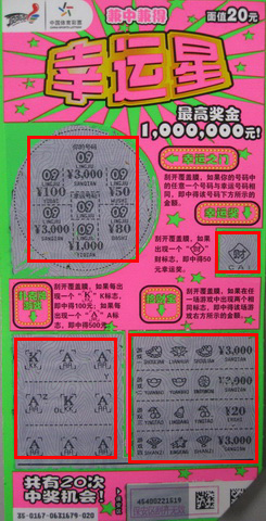 9月25号晚上,小周像往常一样来到了08093站点,看着墙上挂着的密密麻麻的即开型彩票,十分心动,于是他让销售员拿了一本“幸运星”,然后就在一旁慢慢刮了起来。有意思的是,小周是从最后开始刮起,刚刮到第四张彩票,游戏一“幸运之门”就中了7230元,这让他有点激动,赶紧顺着往下刮,竟然所有游戏项目都中奖了,来了个“满堂彩”。 最后,没想到这张“幸运星”让小周共收获奖金2万元。
