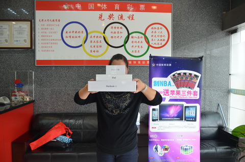 40元能捧走“苹果三件套”?是的!泰州兴化12559站点彩民季先生就是前后只花了40元,便轻松拿下了“苹果三件套”——iPhone4s、MacBook和New iPad!不仅如此,他还领走了8000元奖金,这等好事还要“归功”于江苏体彩独家开展的“刮NBA20元票 中8000就送苹果三件套”活动。