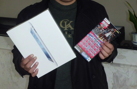 一边和大家聊着,小卫还一边不时看看手中的New iPad,欢喜之情不言而喻。小卫说,苹果系列产品之前都有接触,最近就想拥有一台iPad,“体彩顶呱刮的活动真好,让我不费吹灰之力就实现了愿望,看来我的运气还不错,以后我会继续支持体彩,继续关注顶呱刮。”(泰州:束婷)