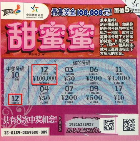2013年1月4日,被誉为“万年真爱日”,对于许多情侣来说寓意特殊,他们会选择在这天和另一半走向婚姻殿堂。同样也在这一天,吴中区的一对情侣感受到了体育彩票带来的惊喜,他们花5元购买的一张体彩“甜蜜蜜”,竟中得10万元的大奖,真可谓喜上加喜。