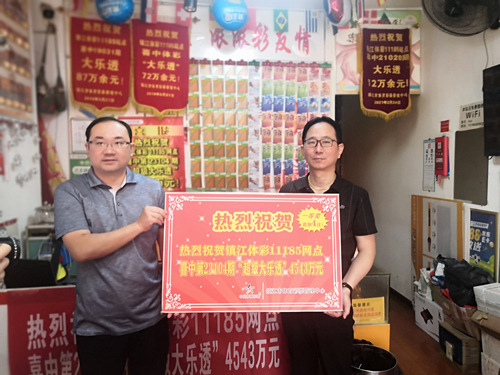 9月9日晚,体彩大乐透第23104期开出的中奖号码为:06、15、16、32、33+08、10。在位于镇江市区学府华庭36幢114号的体彩3211011185网点中出一等奖(含追加)4注,奖金共计4543万元!