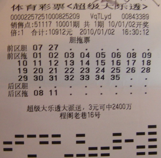 这位男子投注的是胆拖形式的复式票,前区胆为“7、27”,拖为除了“7、27”之外的“1—35”中的号码,后区为“8、11”,总计10912元的投注额,与当期开奖结果只相差后区一个数字,错过了一等奖。虽然与一等奖擦肩而过,但收获也不小:二等奖1注,五等奖90注,七等奖1305注,八等奖4060注!