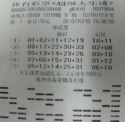 10月10日晚7点半,叶先生来到05858站点旁的“美购超市”采购了些生活用品,出来后不忘到站点光顾一下,以10元零钱随机购买了10119期“大乐透”5注,其中第3注号码为:前区“05、13、14、23、26”,后区“03、10”。当期开奖前区与叶先生的号码完全吻合,后区中出“03”,大乐透二等奖就这样撞上了这位幸运儿,总计奖金72655元。有趣的是,叶先生直到15日取出彩票统一核对时,才发现自己无意间中了大奖,兴奋得一个周末都不知怎过了,这种激动的心情一直持续到周一前来兑奖的时候。
