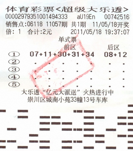 上午十时许,两位彩民各拿一张中奖彩票走进了南通体彩中心兑奖大厅,他们正是其中2注大乐透二等奖得主,从他们称兄道弟的架势和出票时间的相近来看,他们就是经常一起打票的彩友。两张彩票,都是单注一个号码:07-11-30-31-34+08-12,当问到号码是谁选的,另外还有两注是不是他们中的时,两个人又卖起来关子。