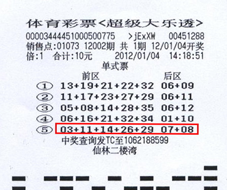 南京彩民购物找零买彩 中得大乐透1000万元大奖
