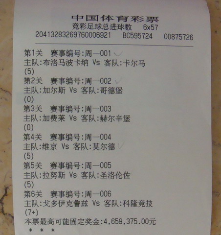 夏先生当天他选择了瑞超的布洛马波卡纳VS卡尔马,加尔斯VS哥德堡,加费莱VS赫尔辛堡,挪超的维京VS莫尔德,阿甲的拉努斯VS圣洛伦佐和戈多伊克鲁兹VS科隆竞技等6场比赛,其中有两场猜了“0”。和之前南京彩民李先生投注手法相同的是,同样采用容错玩法,只是这次夏先生采用的是6*57。