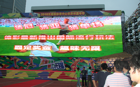 “激情南非 魅力无锡”2010无锡体育中心世界杯嘉年华是一场集合众多南非世界杯元素于一身的全民参与世界杯的活动。配合世界杯赛程,在无锡体育中心体育场设置了最具规模的万人观赛广场,并配备了200平米超大屏幕,让球迷朋友们一如身临南非,共享世界杯盛况。