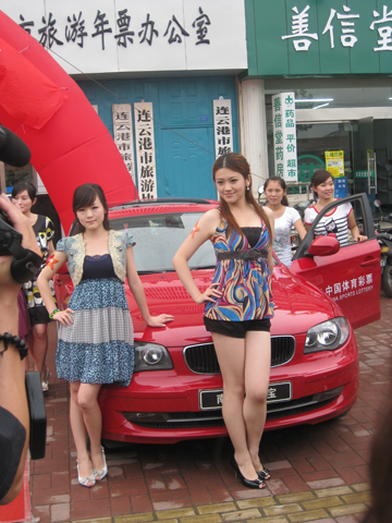 同样引眼球的应当是现场的宝马汽车和美丽的车模,香车配美女威力果然不同凡响,众人纷纷与宝马和车模合影,拿着相机横着拍,竖着拍,忙的不亦乐乎……