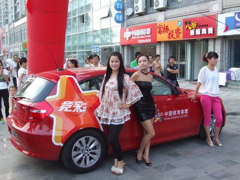 在世界杯开赛之日(6月11日),由江苏省体育彩票管理中心与《现代快报》等联手推出的“竞彩女生”选拔活动正式启动。江苏省体彩中心将签约2名“江苏竞彩女生”,作为江苏体育彩票竞彩形象大使,同时每人将获得价值5万元的宝马购车券。2名“竞彩女生”还将在活动结束后,随16名周获奖者共同前往北京,参加“体彩零距离”活动。8月14日,省体彩中心将在得票最多的前两位“竞彩女生”的支持者中,抽取1名一等奖,获得终极大奖——宝马汽车一辆,在所有进行投票的活动参与者中,将抽取10名幸运奖,每人获得价值3000元的旅游券。