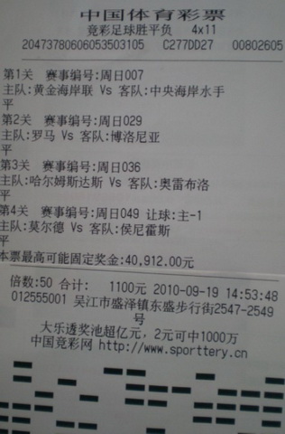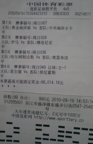 赵先生坦诚地说:“细心的人看得出来,这次我挑的4场比赛都是固定奖金高的比赛,而且选择的都是冷门结果。自从竞彩上市以来,我经常挑这种比赛投注,这种投注方法虽然风险高,但奖金也高,不过,这是竞彩游戏中大奖独具的魅力所在。而我买竞彩也只买单式,看好后就串关投注并且加大投注力度。”在技艺高超之余,赵先生也很大胆,他此番总共投注了149倍,这次的总奖金超过了10万余元。“这次中奖后,我可以用这笔奖金投注,再去冲击更多大奖。”赵先生言语中透露出自信和喜悦。(陈晓)
