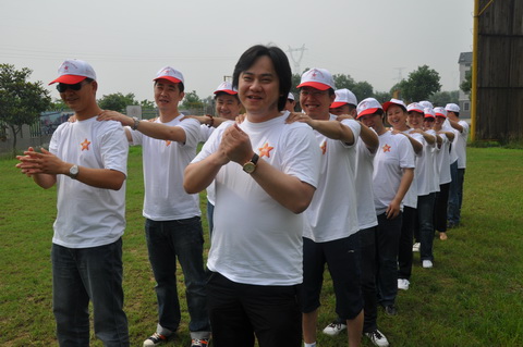 驿站传送,是当天拓展训练的最后一个项目。游戏内容类似拷贝不走样,每组队员坐成一列,第一位队员拿到一张写有数字的纸条,然后在前一位队友的背后手写出字样,然后依次传下去,最后一位队友报出传送的最终结果。对于这一集体默契度要求很高的项目,在较充裕的时间范围里,这些平时对数字很敏感的业主们十分顺利的完成了前两次任务。但时间缩短了一半后,游戏难度一下增加了很多,在不能违反游戏既定规则的前提下,组员们各抒己见,出谋划策,有了沟通,大家的思维顿时被打开,对于最后的争夺各出奇招,合理的“钻空子”。