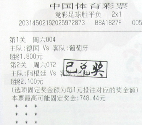 欧洲杯不仅吸引社会名人参与玩竞彩,但更成为许多草根一族展现自己的舞台。前不久,无锡一彩民就选择了一场欧洲杯德国VS葡萄牙和一场阿根廷VS巴西的友谊赛进行投注。 德国是本届比赛的夺冠热门,因此这一场球并不难猜,而阿根廷VS巴西的比赛,就有一定的难度,两队在最近的8次交锋中,阿根廷仅仅取得过1次胜利,剩下的7场比赛中5负2平,战绩惨淡。但这位彩民则恰恰看好阿根廷胜出。在竞猜的两场比赛中都选择了主队获胜,命中竞彩结果,赢得13.2万元奖金。
