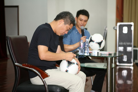 在互动环节,刘建宏现场出题,球迷们踊跃抢答,所有答对的球迷都获得了刘建宏亲笔签名的足球,这一礼物让大家喜出望外。(通彩)