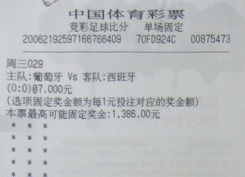 6月28日,西班牙点球大战4比2淘汰葡萄牙进入决赛。实力上的悬殊,使得赛前普遍看好西班牙队,然而顽强的葡萄牙不仅在90分钟比赛中未输一球,还将西班牙送到了点球决战的位置,只是命运的天平更倾向西班牙。在竞彩游戏中,竞猜的正是交战双方90分钟的赛果,这一0:0的结果给无锡江阴的一位竞彩玩家赢得154万元奖金。