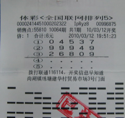 中奖彩民胡先生(化名)是尚湖镇人,购买体育彩票是他的业余爱好,尤其对“7位数”玩法情感颇深,因是司机的关系,常常忙里偷闲将车开至站点边买上几注,所以购彩没有固定的地点。2007年,尚湖镇建湖村55810站点设立以后,他便成了那里的常客。55810站点有一批对“排列3”、“排列5”颇有研究的彩民,并且中奖不断,渐渐地,胡先生也被熏陶成了一位排列玩法的忠实彩迷。胡先生每天傍晚四五点钟必到站点,每期投注在五六十元左右,以“排列3”为主,稍带几注“排列5”及他的挚爱“7位数”,都以单式票为主,有时也进行倍投,小则2倍,大则20倍,他自主选号,从无间断。