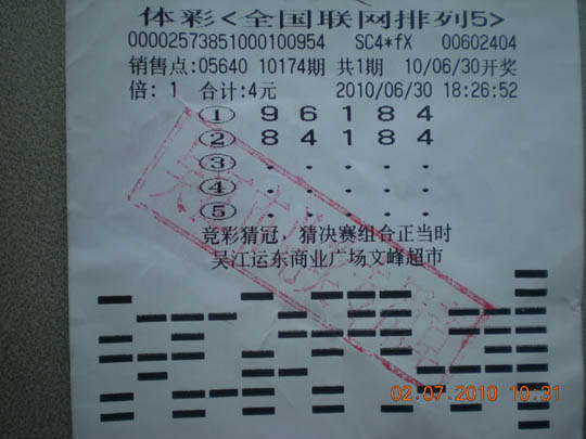 世界杯正在如火如荼地进行中,吴江的竞彩玩法也持续走热,不少彩民都收获了丰富的奖金,传统玩法排列5也不甘落后。6月30日,10174期排列5开出“84184”, 运东商业广场文峰超市的05640站点李先生(化姓)以4元的单式票轻而易举地拿下了10万元大奖。
