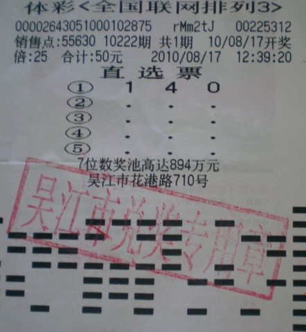 8月17号这天中午,他选了“140”这注号码,还进行了25倍的倍投,因为他觉得这个号码感觉很好,很可能中奖。结果真的被他的灵感所应验,中了25000元大奖。