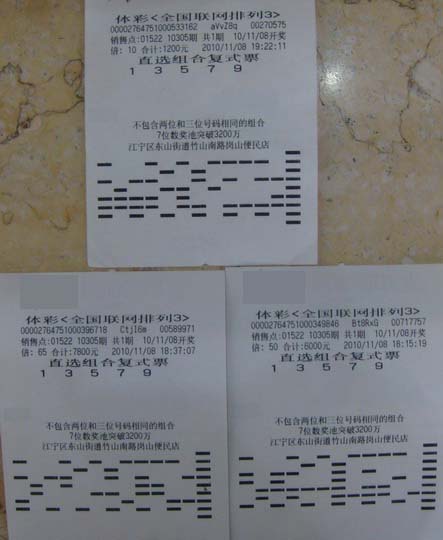 11月9日,刘先生前来南京市体彩中心兑奖,当他出示中奖票的时候,工作人员和其他兑奖的彩民都觉得很有意思,因为他的3张中奖票是一样的,而且都是奇数。刘先生笑着说:“有一次,我在研究走势的时候,发现同样开出偶数、奇数的可能性也不小,所以我每天就着重研究出奇偶的可能性大小,然后决定当天投注什么。”
