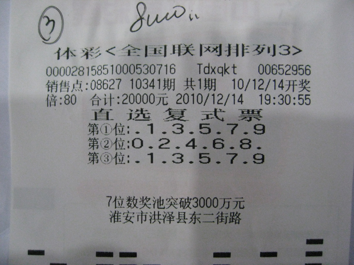 淮安彩民“洪泽小李”(化名)近一个月来知名度猛增,因为他最近连续中得体彩排列三大奖而频频在媒体上“曝光”。洪泽小李今年真是财运亨通,近 1 个多月频频中得体彩排列三大奖,累计达到了 70 多万。 13 日他刚兑了 14 万多, 15 日他冒着严寒又来到淮安市体彩中心兑取 14 日中得排三 21 万多元。