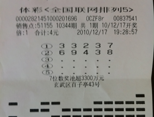 每天坚持买彩已经是不少彩民的一种生活习惯,南京一彩民刘先生(化名)就是其中一员。功夫不负有心人,他于 12 月 17 日 晚中 得“排列 5 ” 10 万元,同时,他也收获了“排列 3 ” 直选 1000 元奖金。