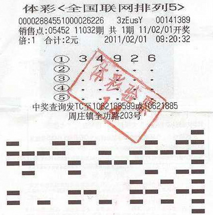 2月1日,小王恰巧路过周庄镇全攻路05452站点,平时很少买彩票的她这几天总感觉自己要交好运了。抱着试试看的心态,小王走进彩票店花2元钱随机购买了一注“排列5”。2月2日除夕那天,小王再次路过05452站点,想起昨天买的那张彩票,于是掏出来一看,5个号码竟然一个不差的对应了起来。难道自己果真交好运了?小王还是不敢相信自己中奖了,拿给站点销售员经过终端机的确认,该彩票确确实实中了大奖。